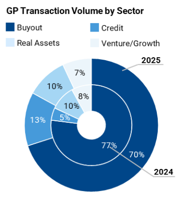 Venture and growth GP-led transactions remained an important component of the secondary market in 2025. Activity reflected continued liquidity pressures and prolonged distribution cycles, with sponsors using GP-led processes to provide liquidity while maintaining exposure to high-conviction assets. Investor interest focused on later-stage companies and assets benefiting from secular trends, including AI adoption and cloud infrastructure.